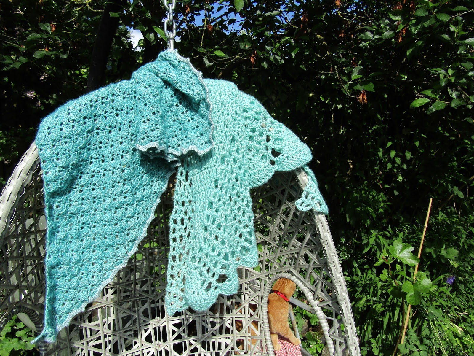 And then this one. The South bay shawl I found on the blog from Ellen: Ellebel. Crocheted with Scheepjes Stone Washed. I used almost 4 balls Green Agate and 1/2 ball of Amazonite. Unfortunately there were a lot of knots in the yarn, that was a little unfortunate.